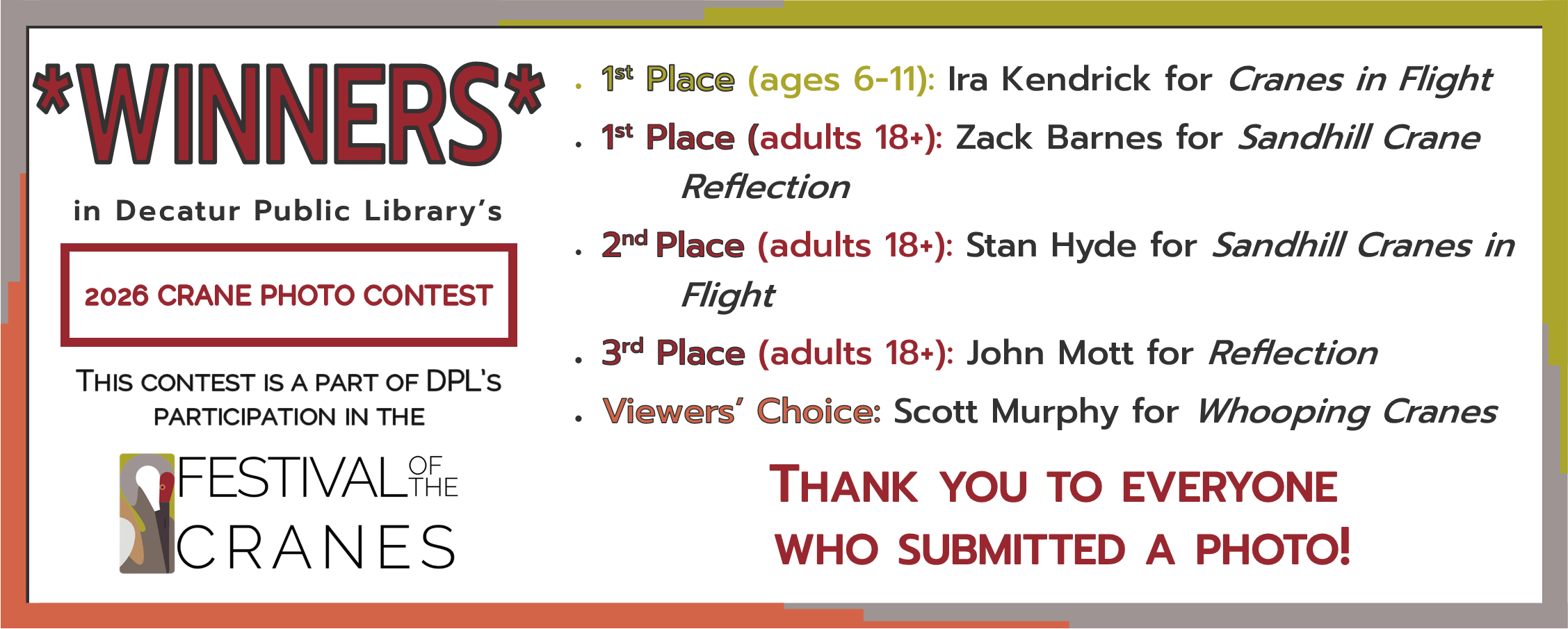 - Decatur Public Library is not responsible for prints left after March 6th. Winning prints stay with the library for future use and are not returned.