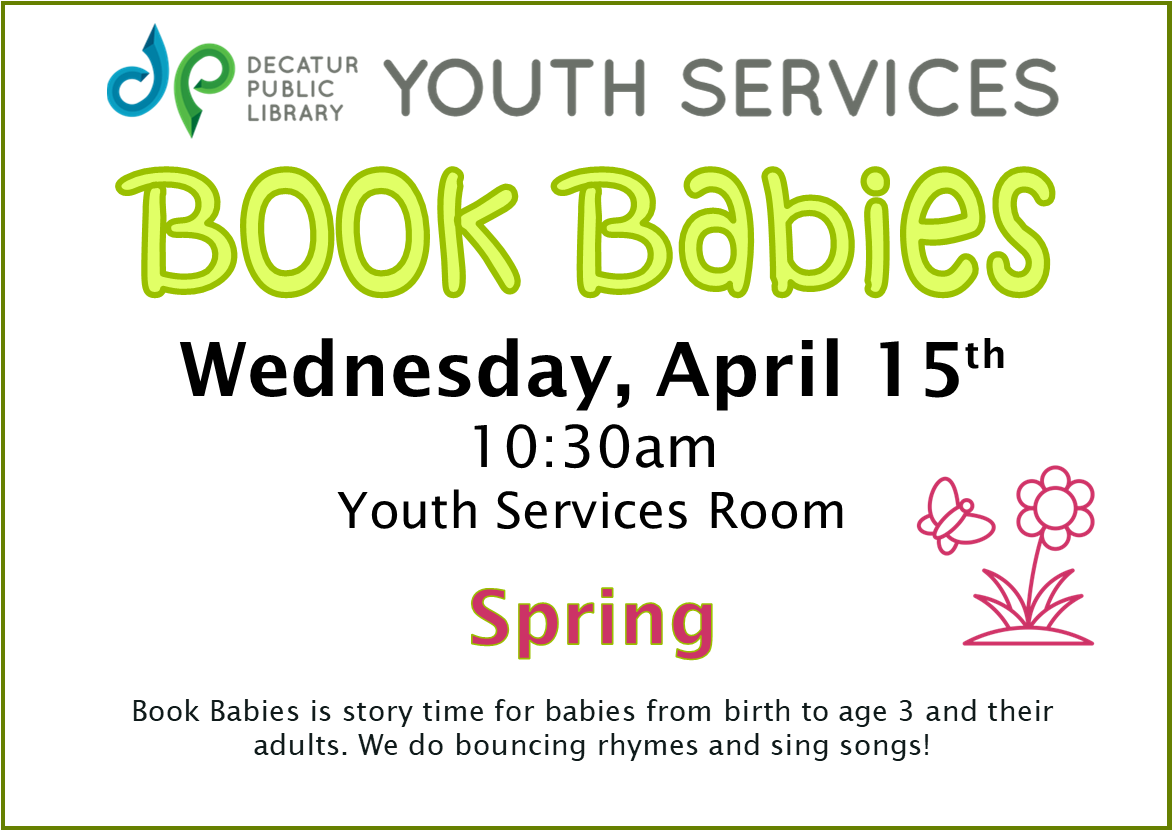 Book Babies is story time for babies from birth to age 3 and their adults. We do bouncing rhymes and sing songs!