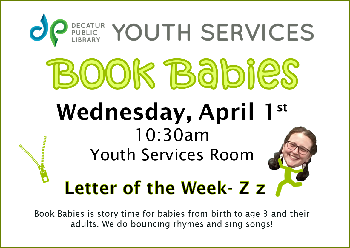 Book Babies is story time for babies from birth to age 3 and their adults. We do bouncing rhymes and sing songs!